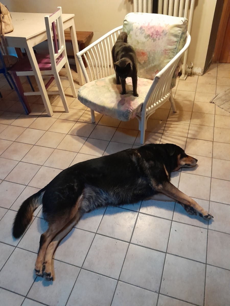Arthur et mon chien Topaze s entendent très bien, et ils ne se connaissent que depuis 2 jours! Il faut attendre un peu pour les câlins…