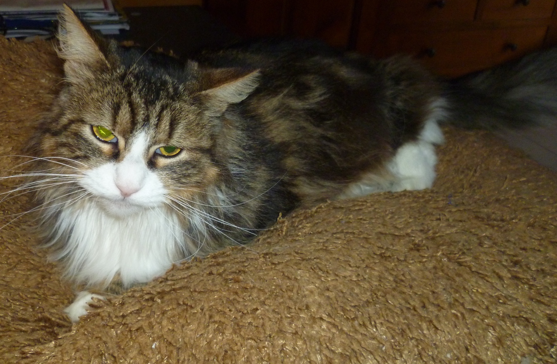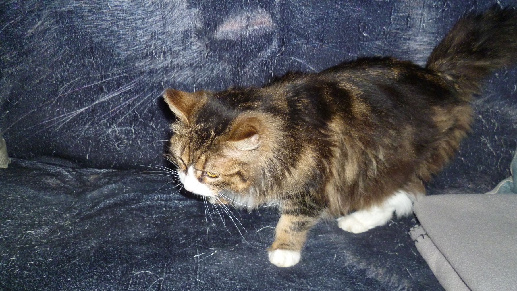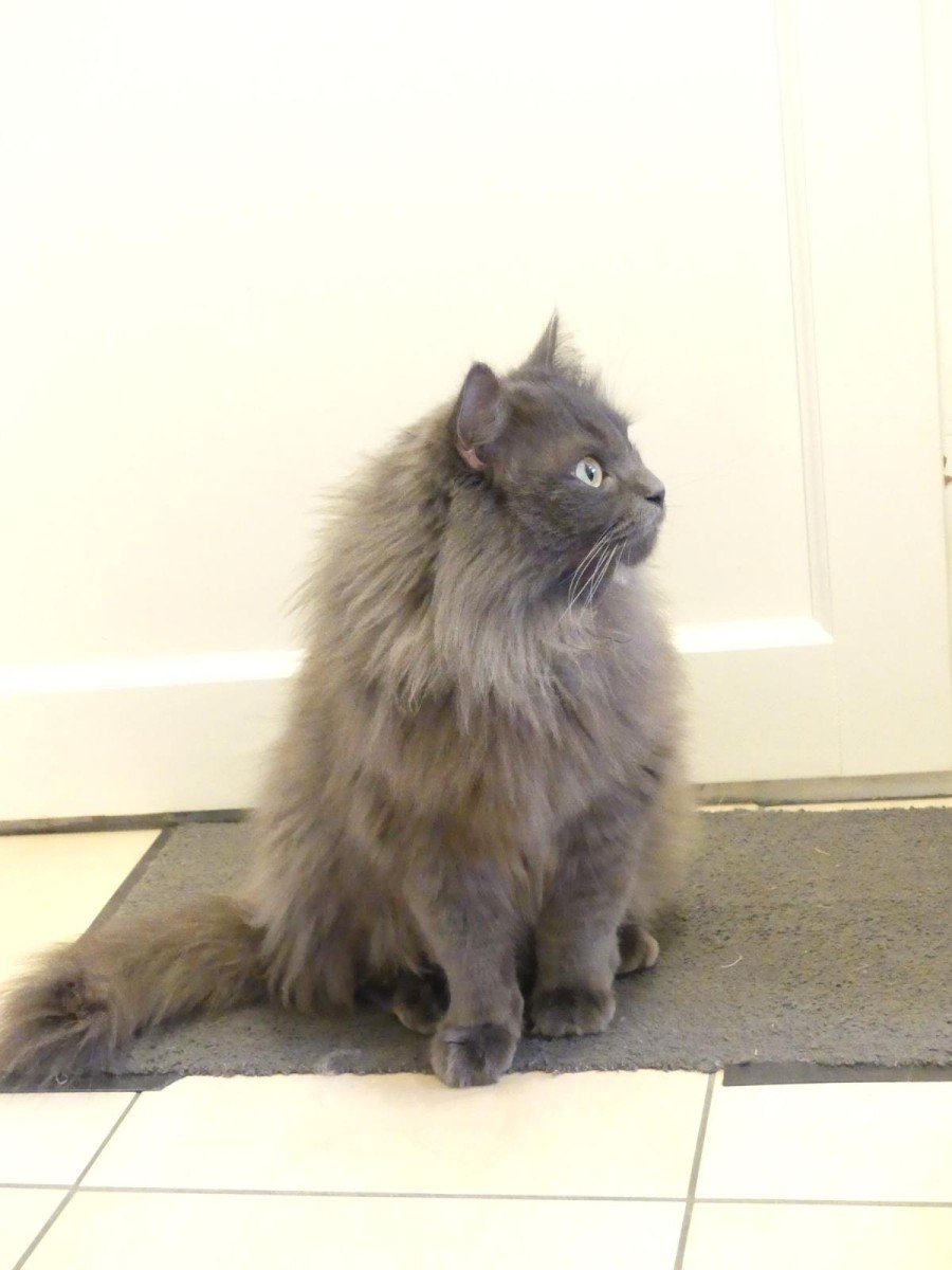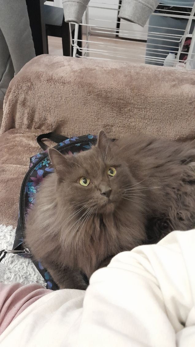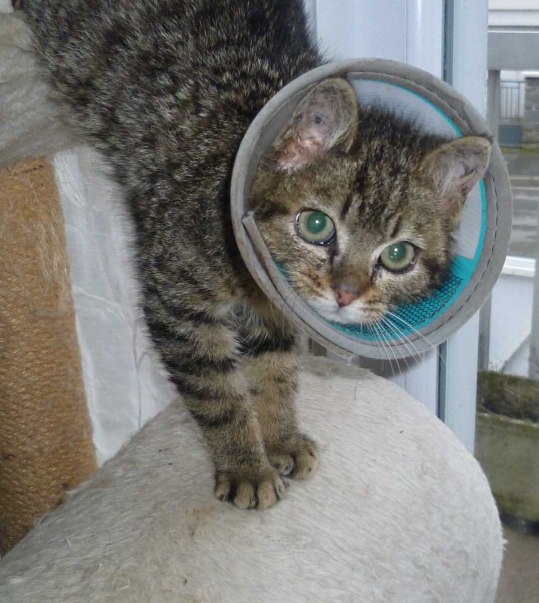 Il nous a fallu le faire amputer d’une partie de sa queue, écrasée par on ne sait quoi (peut-être coincé dans un moteur..), il a un pelage très dense et soyeux.