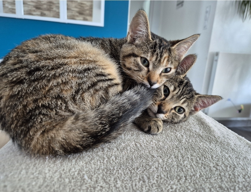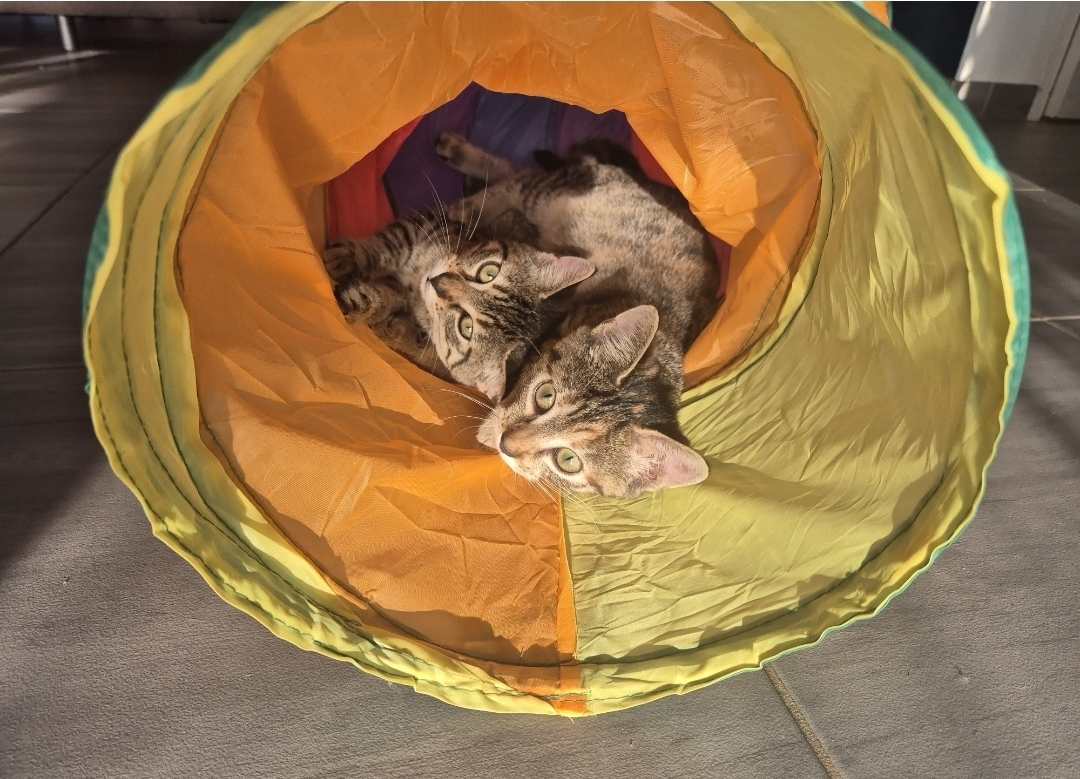 Au bout de 2jours, les louloutes étaient déjà bien à l’aise avec les lieux et avec nous 🥰Elles mangent très bien, Ana est un peu plus câline que Lola mais c’est une vraie petite teigne elle est toujours en train de jouer avec Lola ou rechercher tous les petits coin magiques de la maison haha !