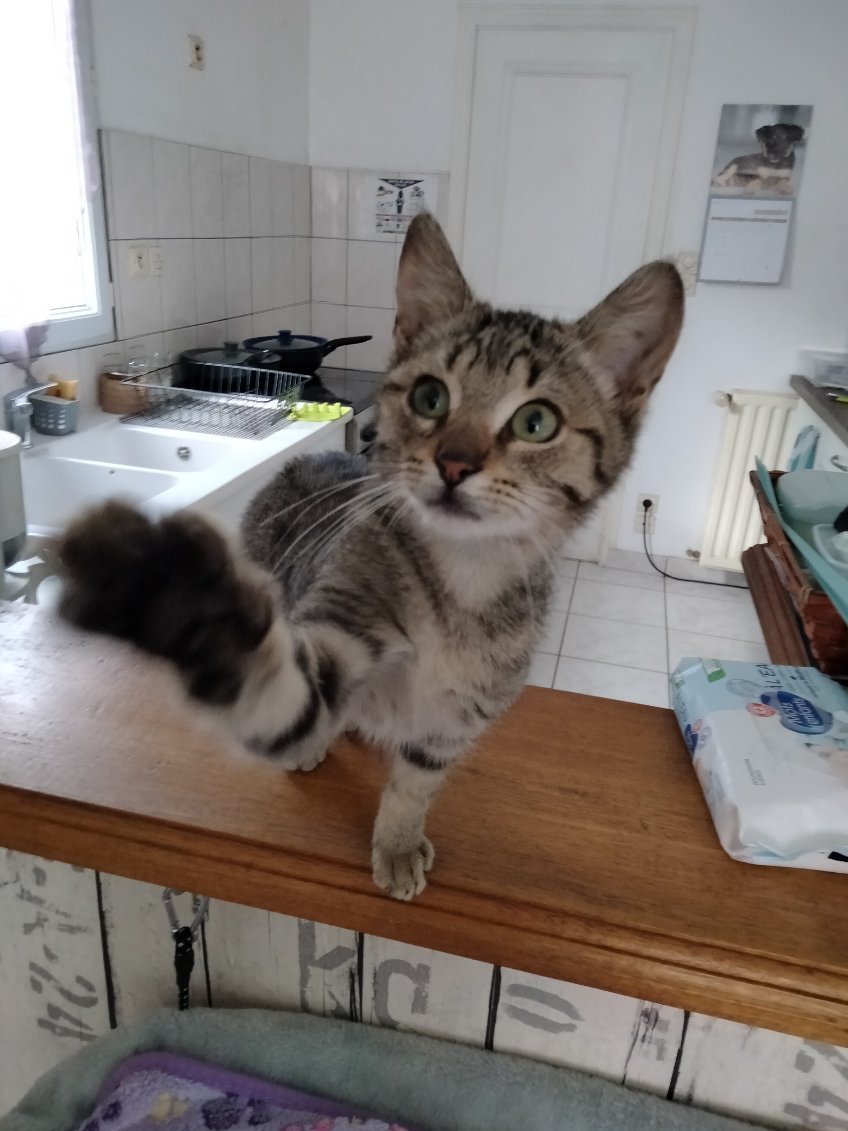 Il n’y a eu aucun accident de litière, l’adaptation a été vraiment très rapides, elle fait des petites bêtises mais ce n’est rien de grave et ça reste un chaton !