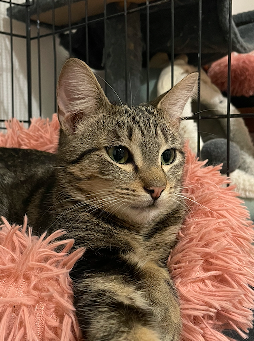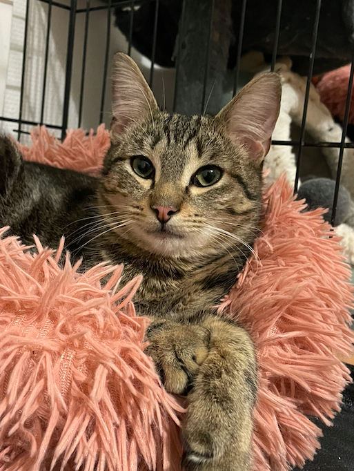 C’est une minette très câline, se pose dans son panier et fait de longues siestes.