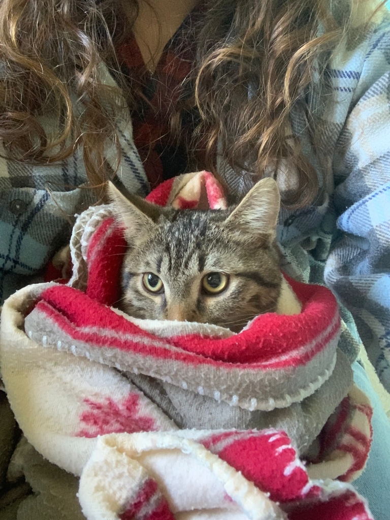 « CHIPIE », minette âgée d’environ 3 ans, arrivée chez Edwige qui, même si elle ne peut la garder, l’a « prise sous son aile ».