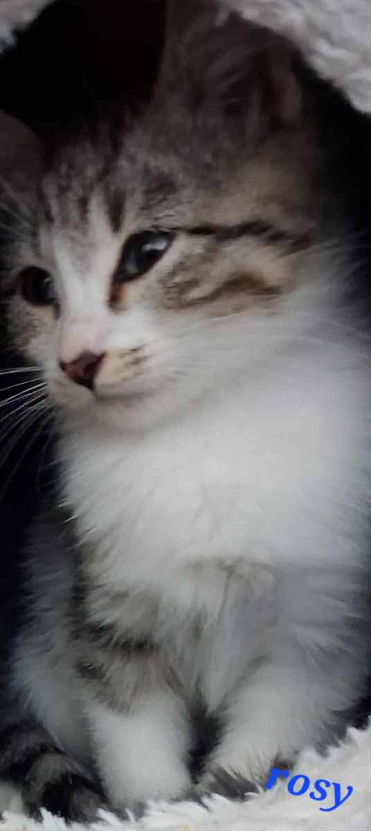 Chipie joue plus que sa sœur. Elles mangent bien toutes les 2 . Heureusement que nous les avons pris toutes les 2 car elles sont très complices et ont besoin l’une de l’autre. Elles s’appellent quand elles ne se voient plus. Elles dorment ensemble l’une contre l’autre, voire la tête de l’une sur l’autre. Mistral fait la toilette de sa sœur