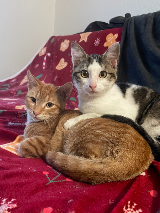 Issus d’une portée de 7 chatons, Hermione et Ron sont depuis toujours deux inséparables. Ces deux chatons sont joueurs, bavards, curieux, gourmands, et très proche de l’humain. De véritables « glues ».