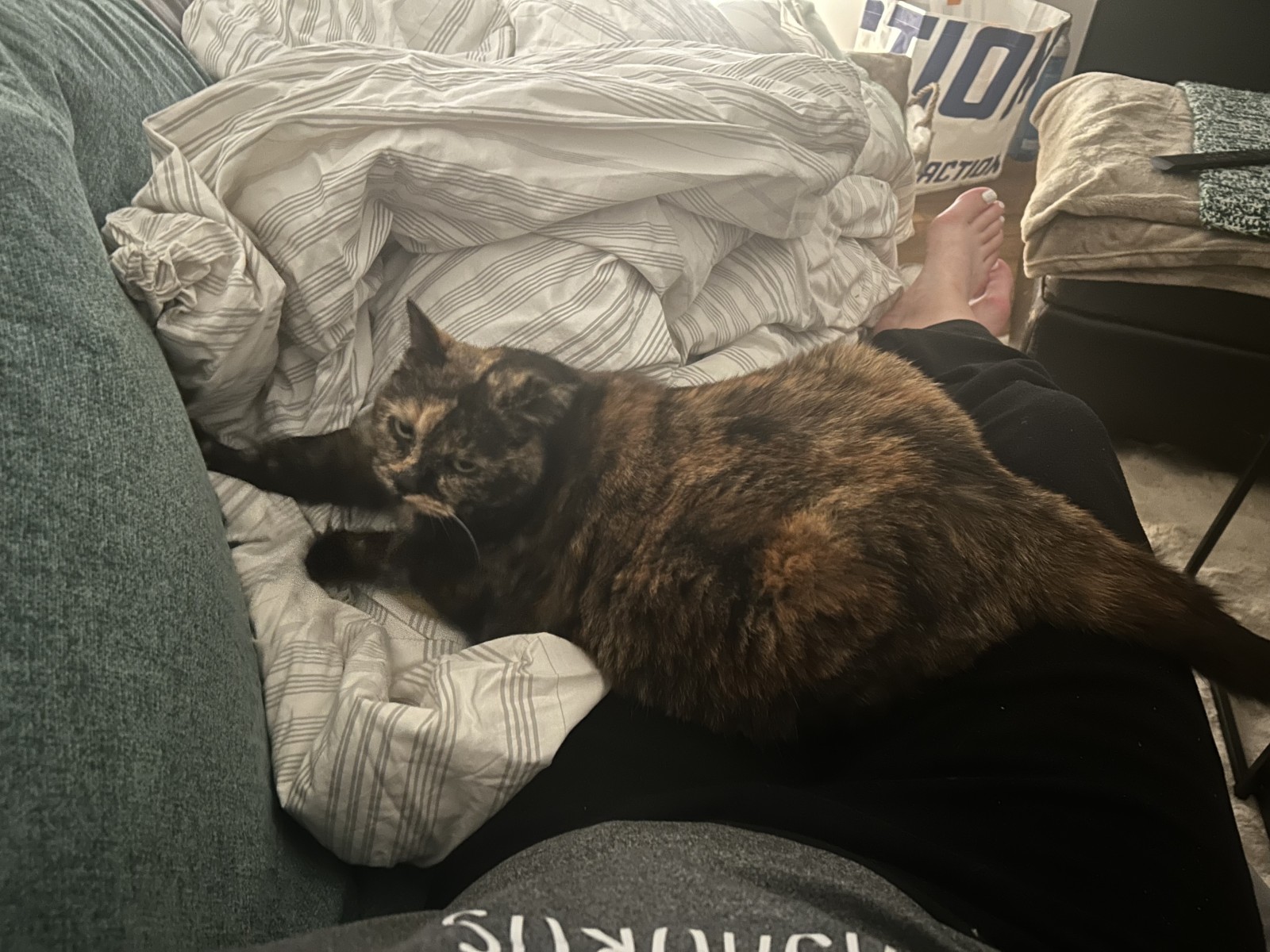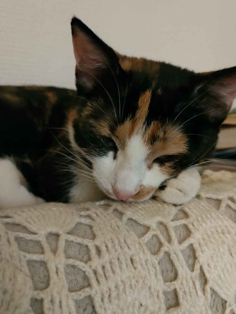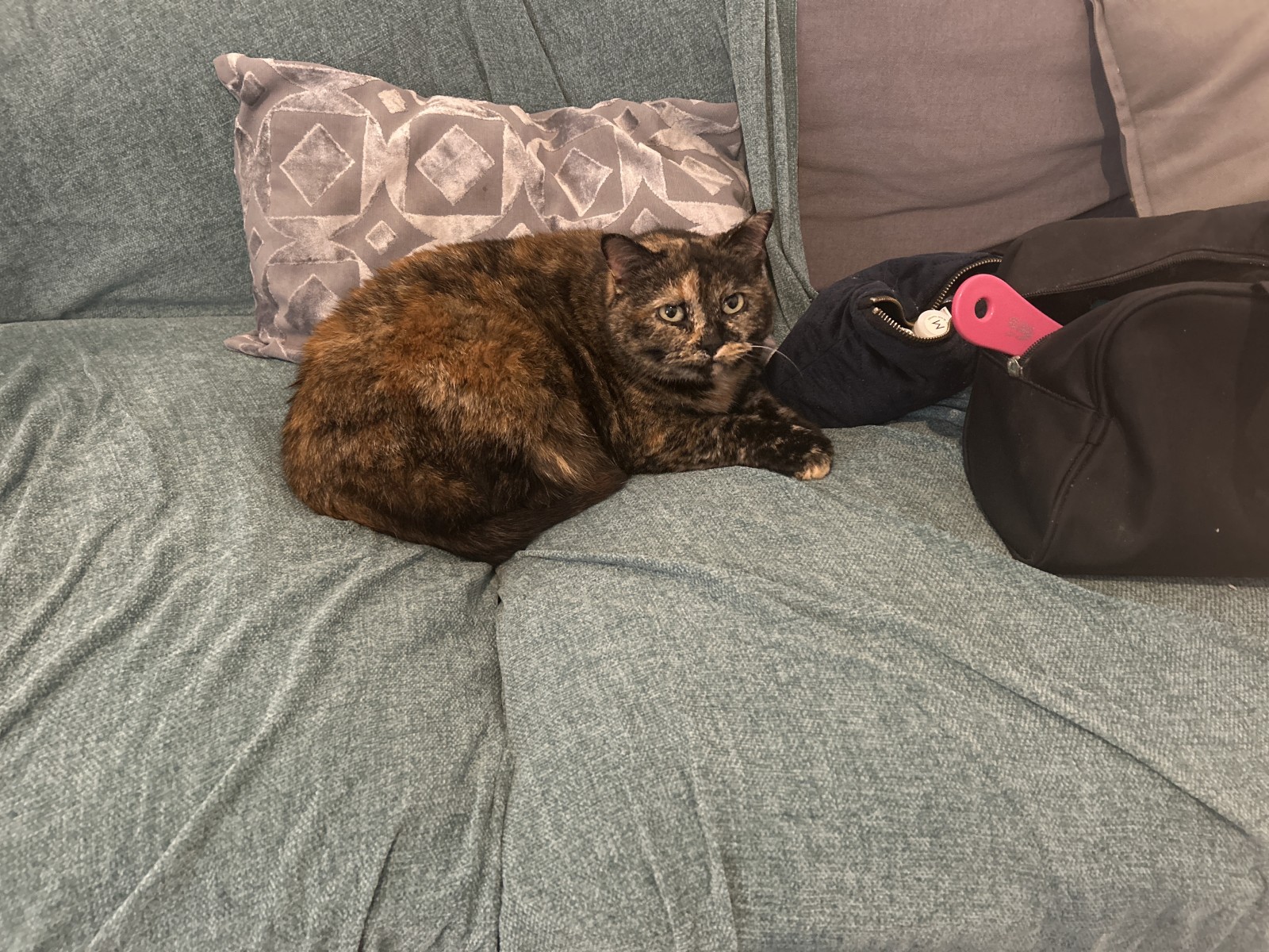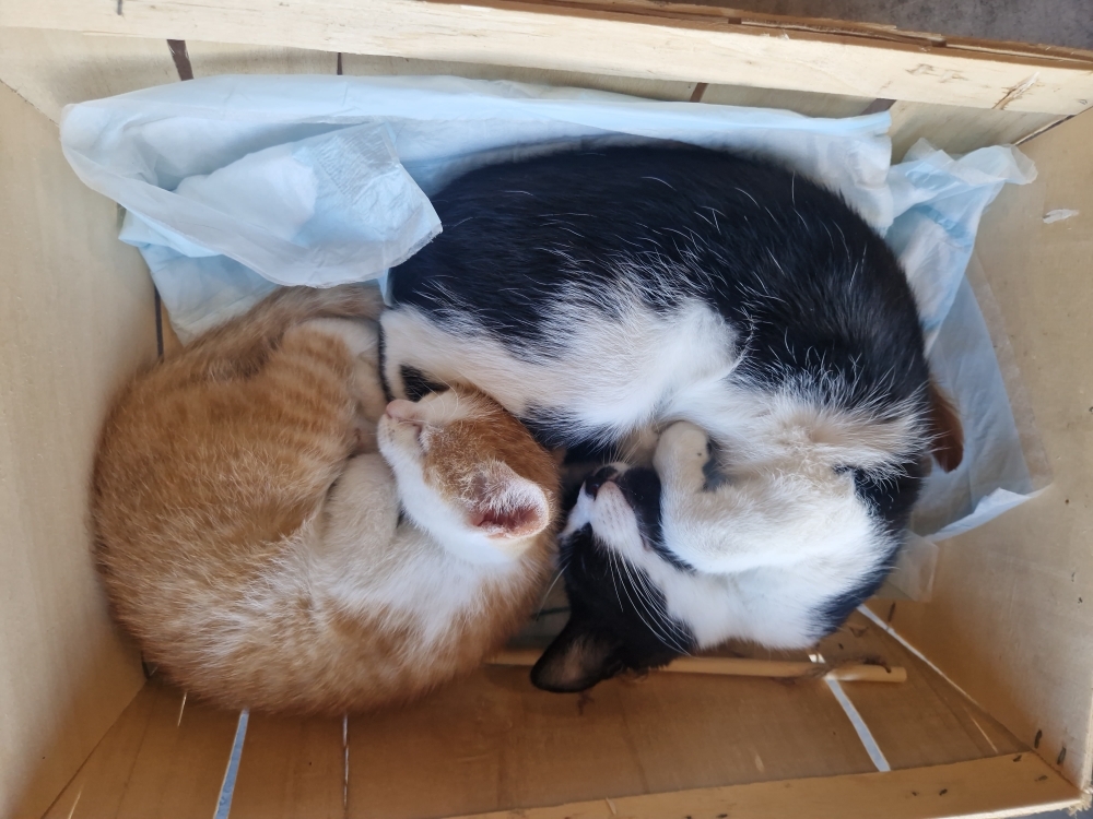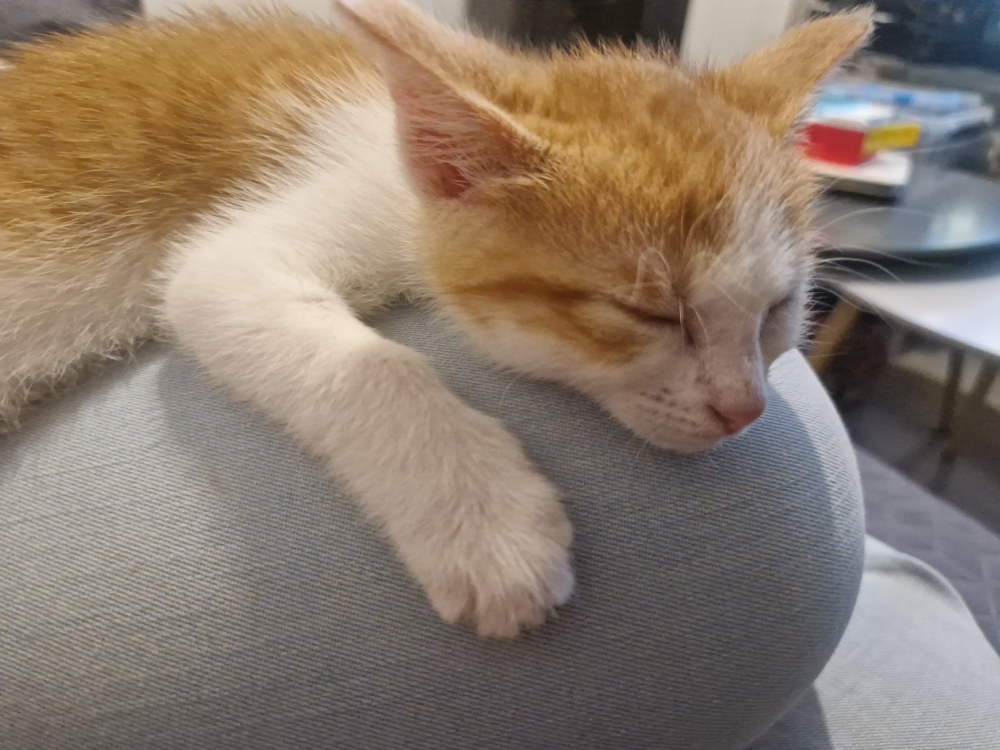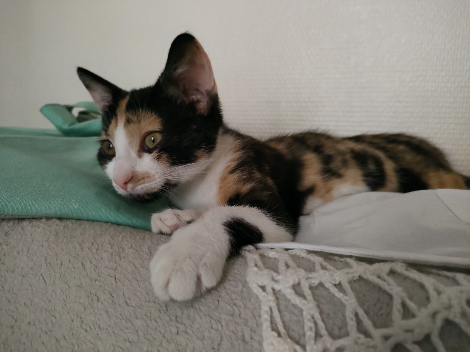 J’ai un joli panier tout doux rien qu’à moi… mais entre nous, dormir dans les bras de « maman », c’est quand même bien mieux !