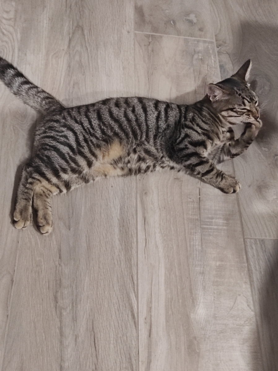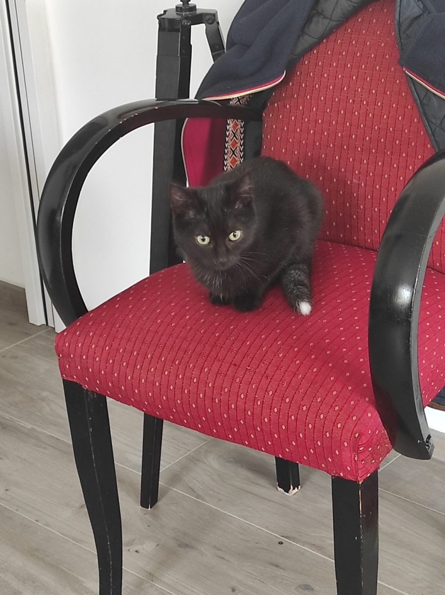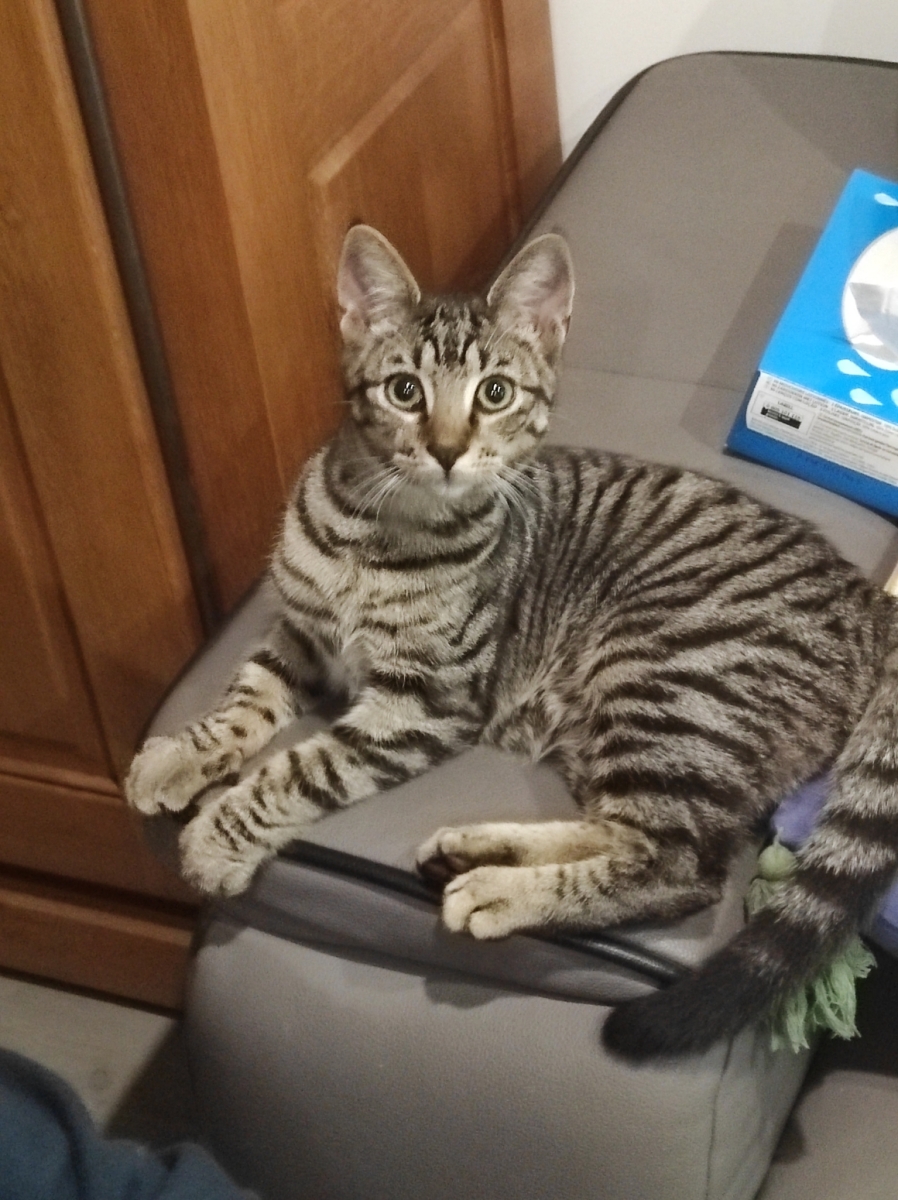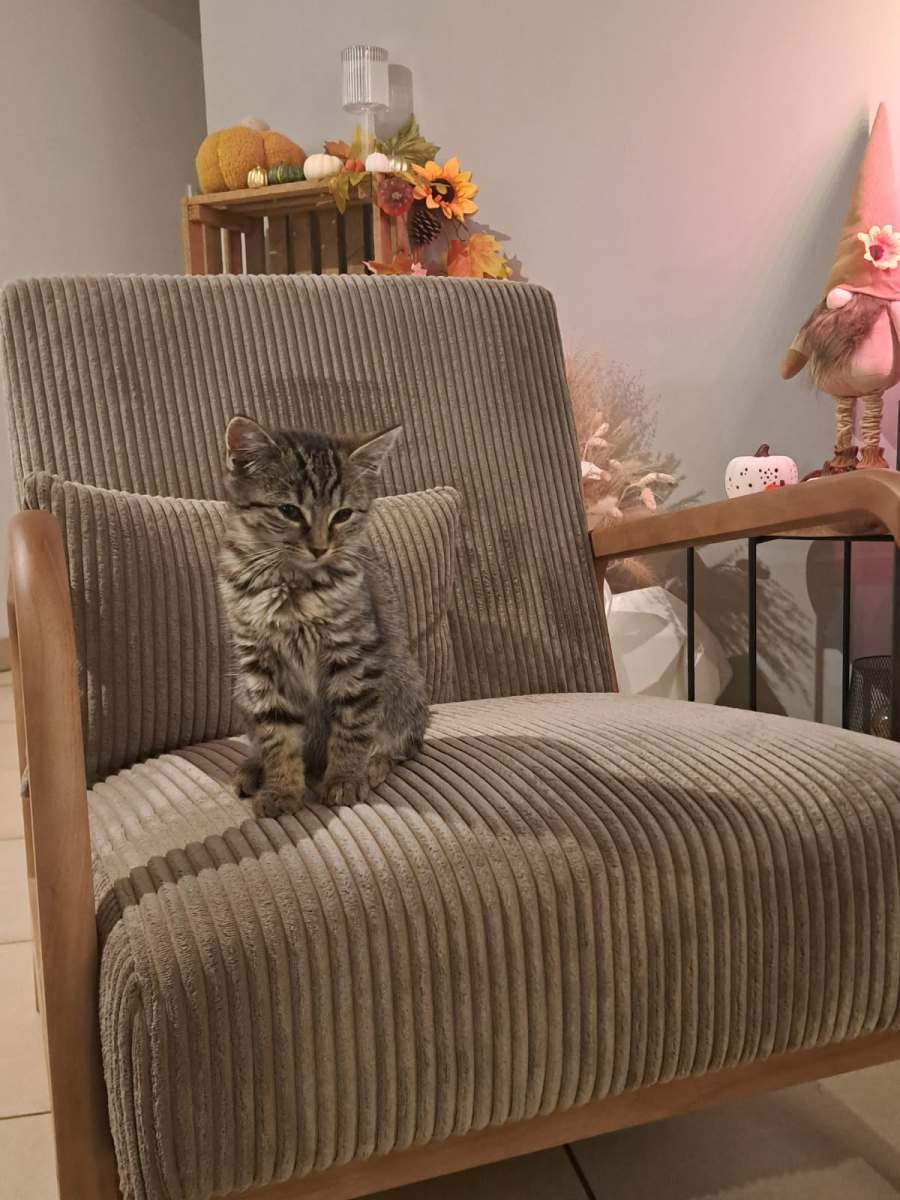 Je vous adresse ci-dessous, les photos de Topaze, arrivé à la maison le 15/10/25. Topaze s’est très bien habitué, il est très calin et espiègle.
