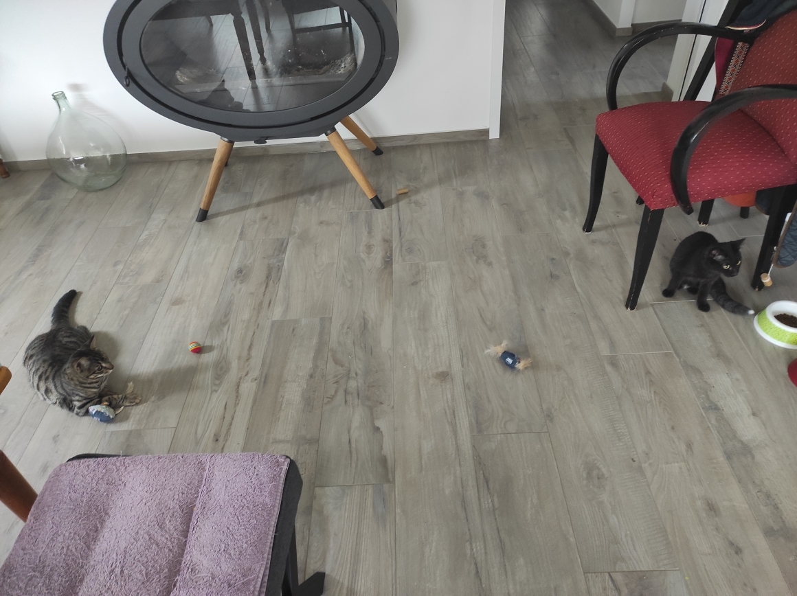 Pour Ficelle, son adaptation à été un peu plus longue avec des accidents de litière journaliers alors qu’elle était propre au début en arrivant. Mais cela fait une semaine que tout est rentré dans l’ordre 👍. Elle reste toute de même plus indépendante que Popoki (normal chacune son caractère !).