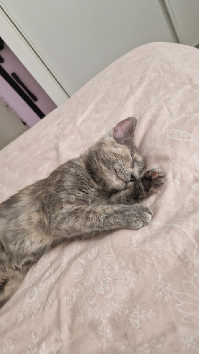 J’ai un joli panier tout doux rien qu’à moi… mais entre nous, dormir dans les bras de « maman », c’est quand même bien mieux !